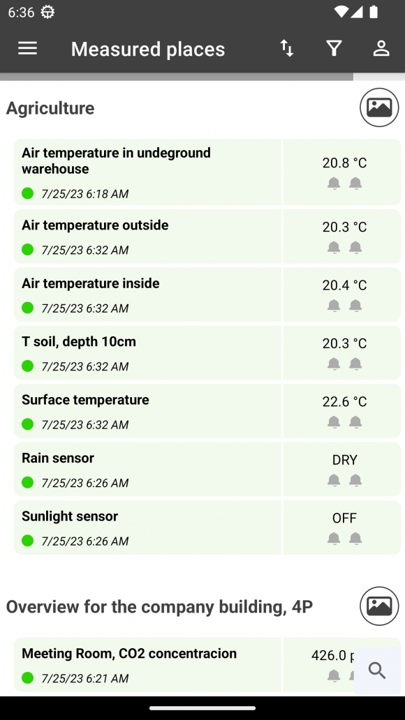 With the app, you not only have access to a list of sent alarm messages from COMET Cloud, but newly you also have the ability to monitor the current measured values from your devices or measured places, all clearly in one place.