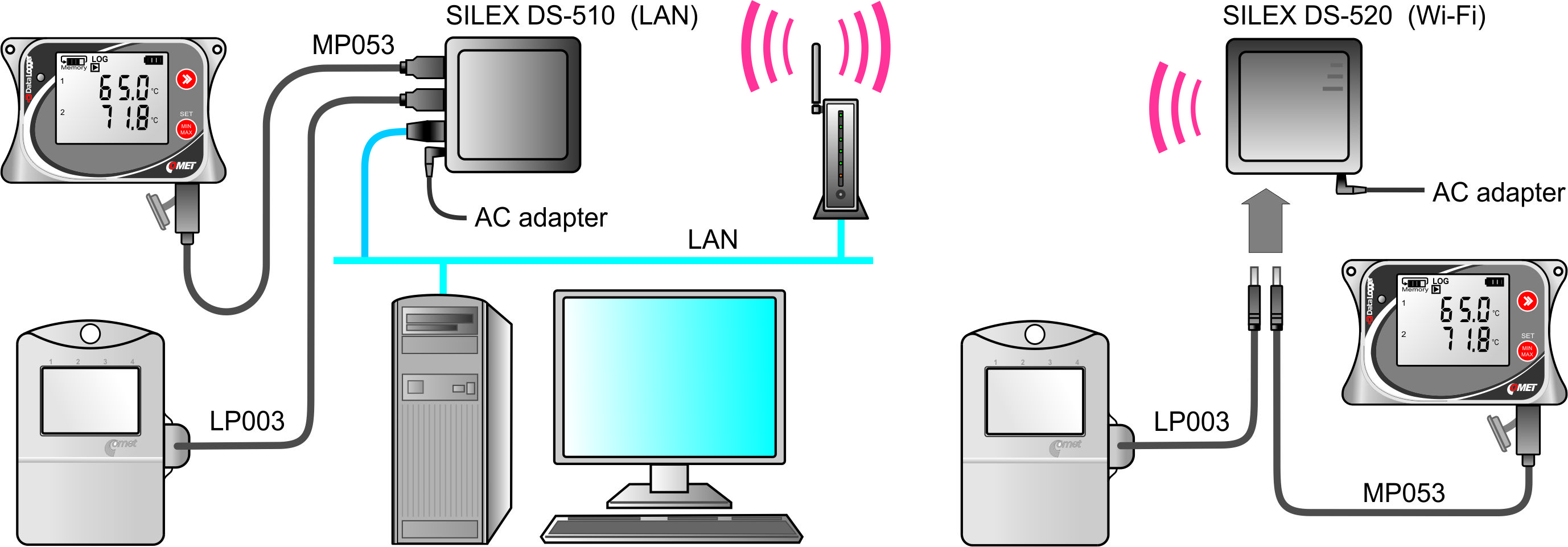 It can be used for connecting all COMET dataloggers to the Ethernet (Silex-DS510) or to Wi-Fi (Silex-DS520). Easily Connect and Share Virtually Any COMET Datalogger on a Network.
