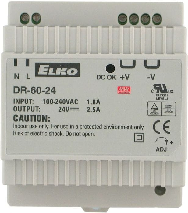 Netzteil 230V-50Hz/24Vdc/2,5A für DIN-Schiene 35mm, doppelte Klemmen 24Vdc, Schaltnetzteil, inkl. DIN-Schiene 100mm Länge