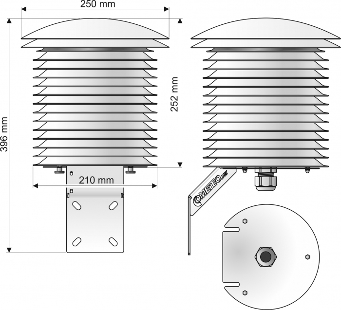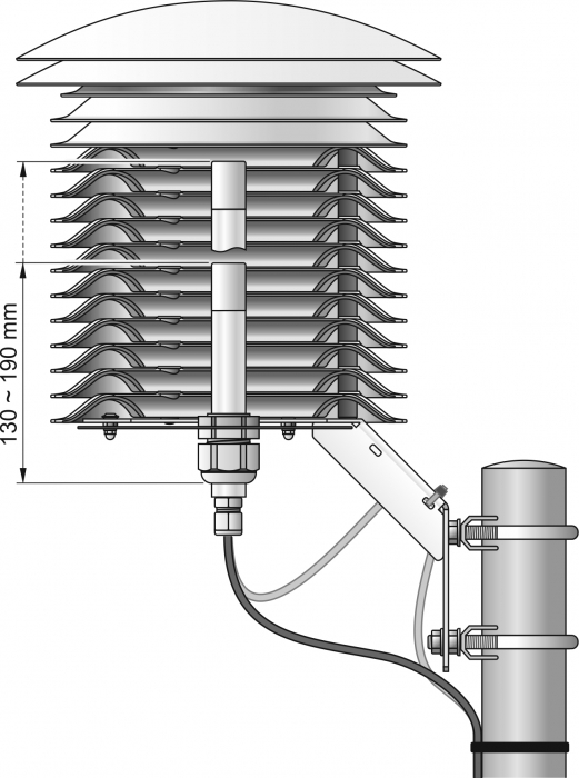 Professioneller Strahlungsschutz zur Abschirmung von Temperatursensoren oder kombinierten Temperatur-/Feuchtigkeitssensoren. Passiver, natürlich belüfteter Strahlungsschutz, konzipiert für den Schutz von Wettersensoren mit einem Durchmesser von 13 bis 18 mm.