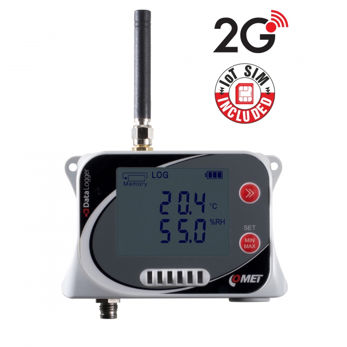 IoT Wireless Temperatur- und Relativfeuchtigkeits-Datenlogger mit Anschluss für weitere Temperatursonde, mit integriertem 2G-Modem