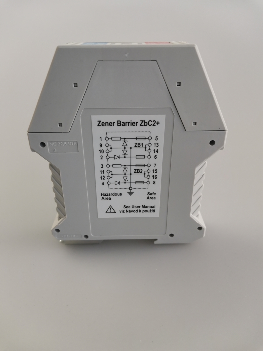Die Zener-Barriere ZbC2+ ist eine zertifizierte eigensichere Schnittstelle. Sie wird verwendet, um ein zertifiziertes eigensicheres Gerät, das sich in einer explosionsgefährdeten Atmosphäre (Ex-Bereich) befindet, mit einem nicht zertifizierten Gerät in einem sicheren Bereich zu verbinden.