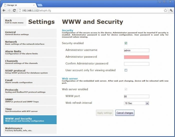 Monitoring of temperature and humidity by means of wireless WiFi network