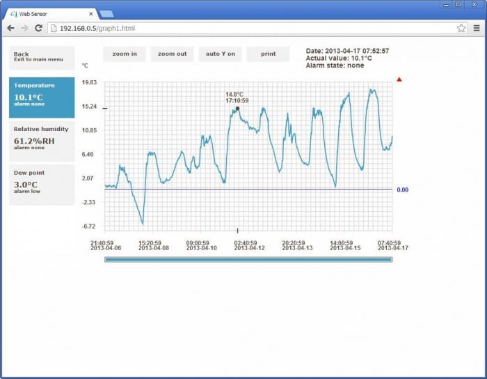 Umgebungstemperatur, relative Luftfeuchtigkeit t-line Web-Sensor. Fernalarm.