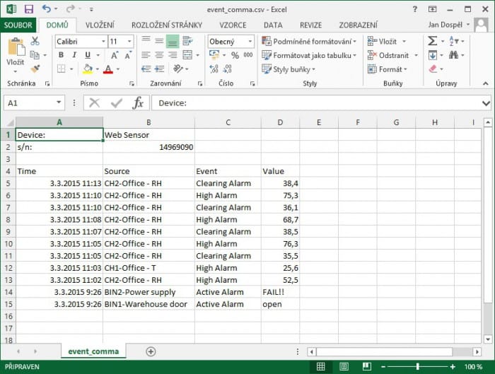 Monitoring of temperature and humidity by means of wireless WiFi network