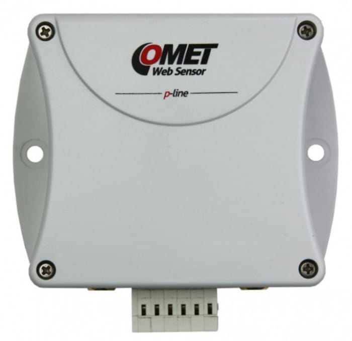 P-Line Web-Sensor zur Messung von Temperatur, relativer Luftfeuchtigkeit und drei Binäreingängen für Zwei-Zustands-Signale. Fernalarm.