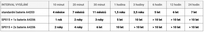 | Lithiumbatterie A4203 - 2200mAh | 4 Monate | 7 Monate | 11 Monate | 1,5 Jahre | 3,5 Jahre | 5 Jahre | 6 Jahre | 7 Jahre |